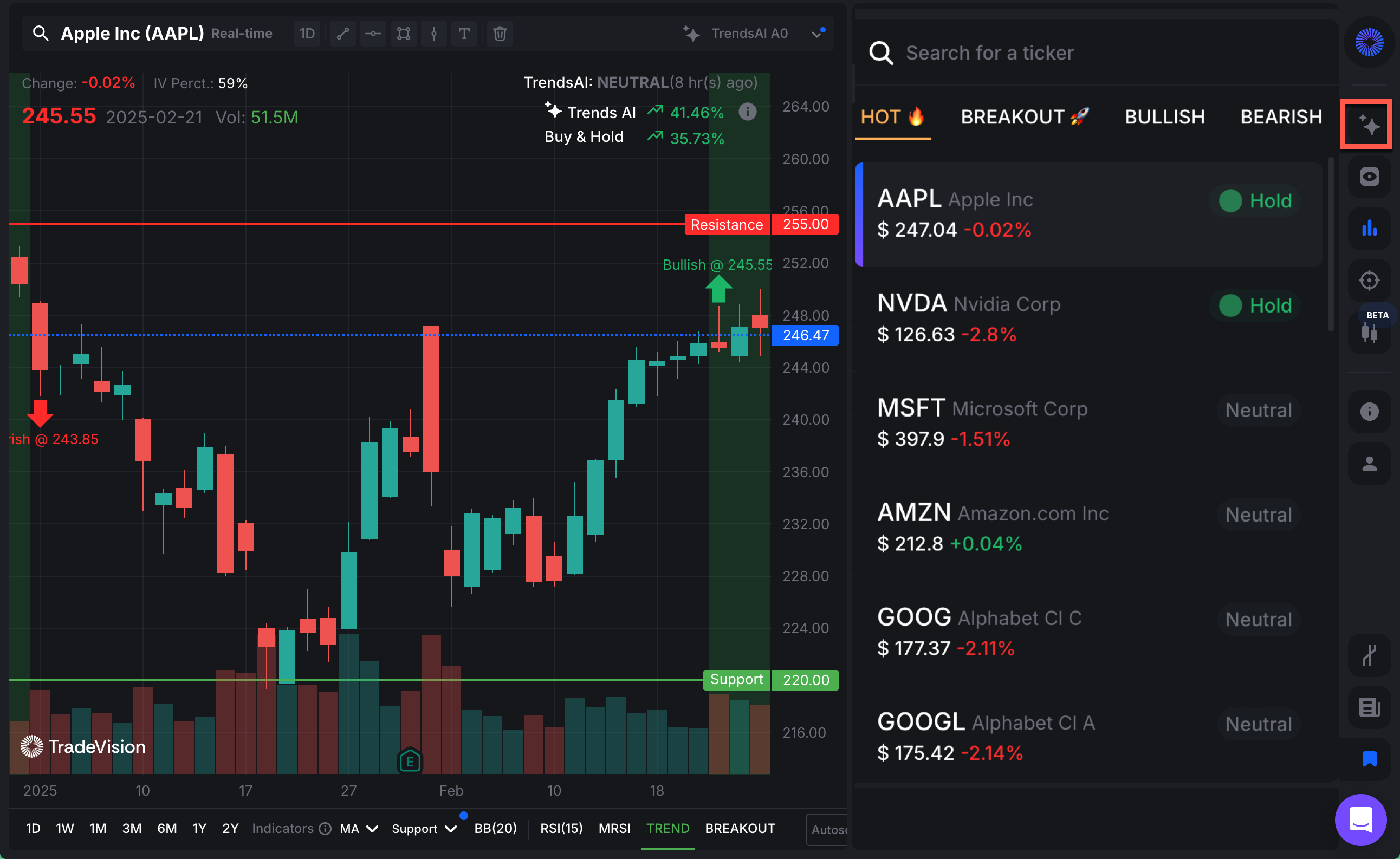 When I’m on the Visualiser, I can (now - thanks for this awesome new feature) show/hide the options, news and watchlist. Very useful. Please also allow me to see the TrendsAI list view (see attached mockup) so I can easily navigate in Visualiser view through the TrendsAI stocks